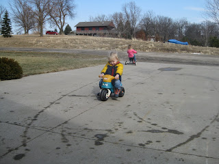 Last week was so refreshing with the WARMTH and SUNSHINE. We played outside every chance we had! Chloe said, "Mommy, it's so boring when we have to be inside all the time." I can tell she takes after her mommy and daddy with her love for the outdoors!! The kids had a blast after being cooped up. They played on the swingset, ran all over the yard, and got out all their summer toys. Here are a few pictures of them riding their trikes...they were very focused!!